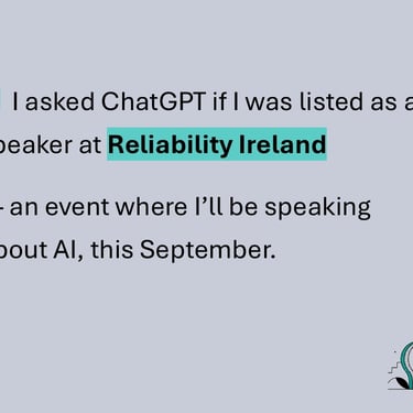 Last weekend I asked an AI if I was listed as a speaker at this event Reliability Ireland (this September, where I speak about AI).